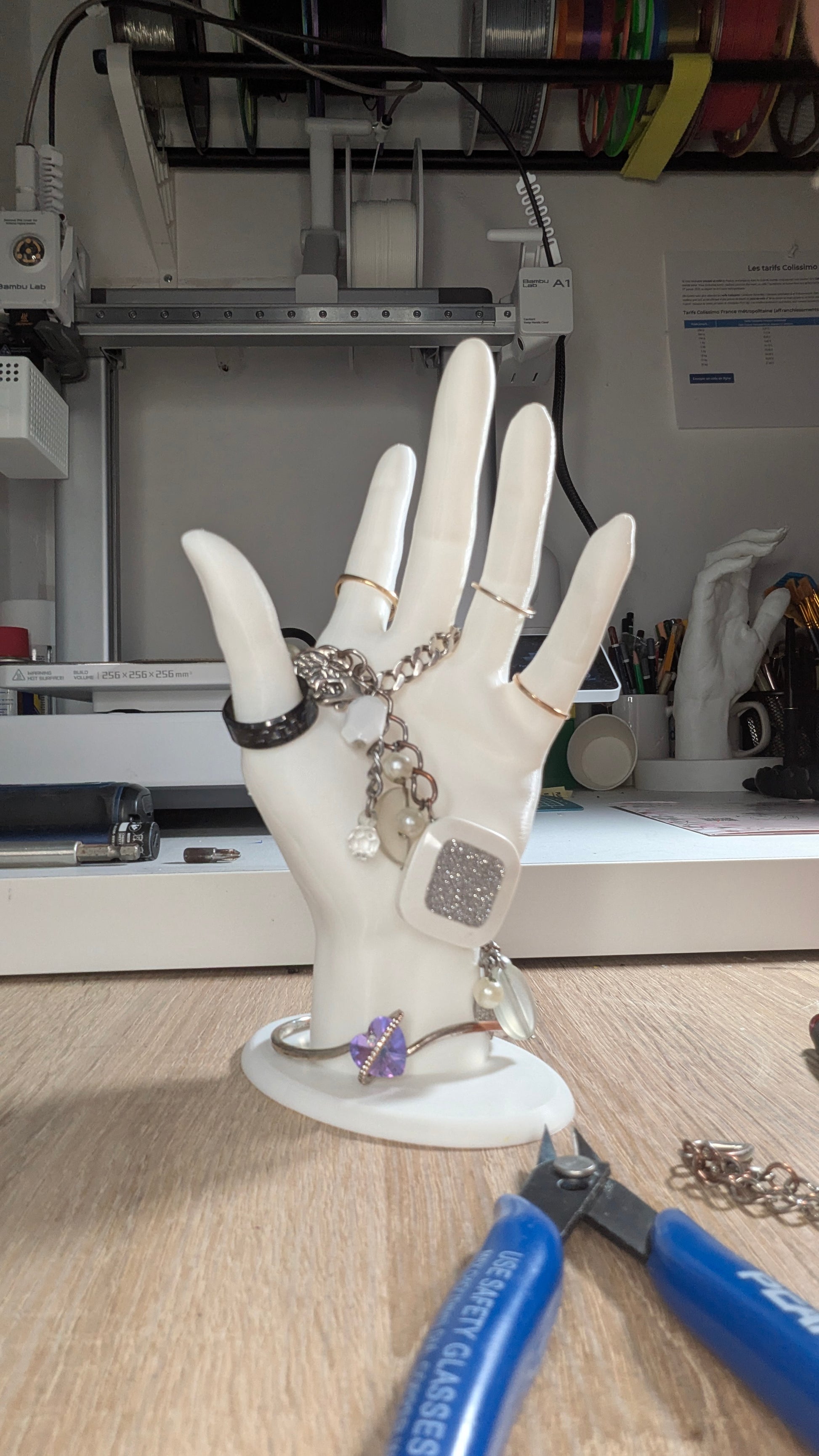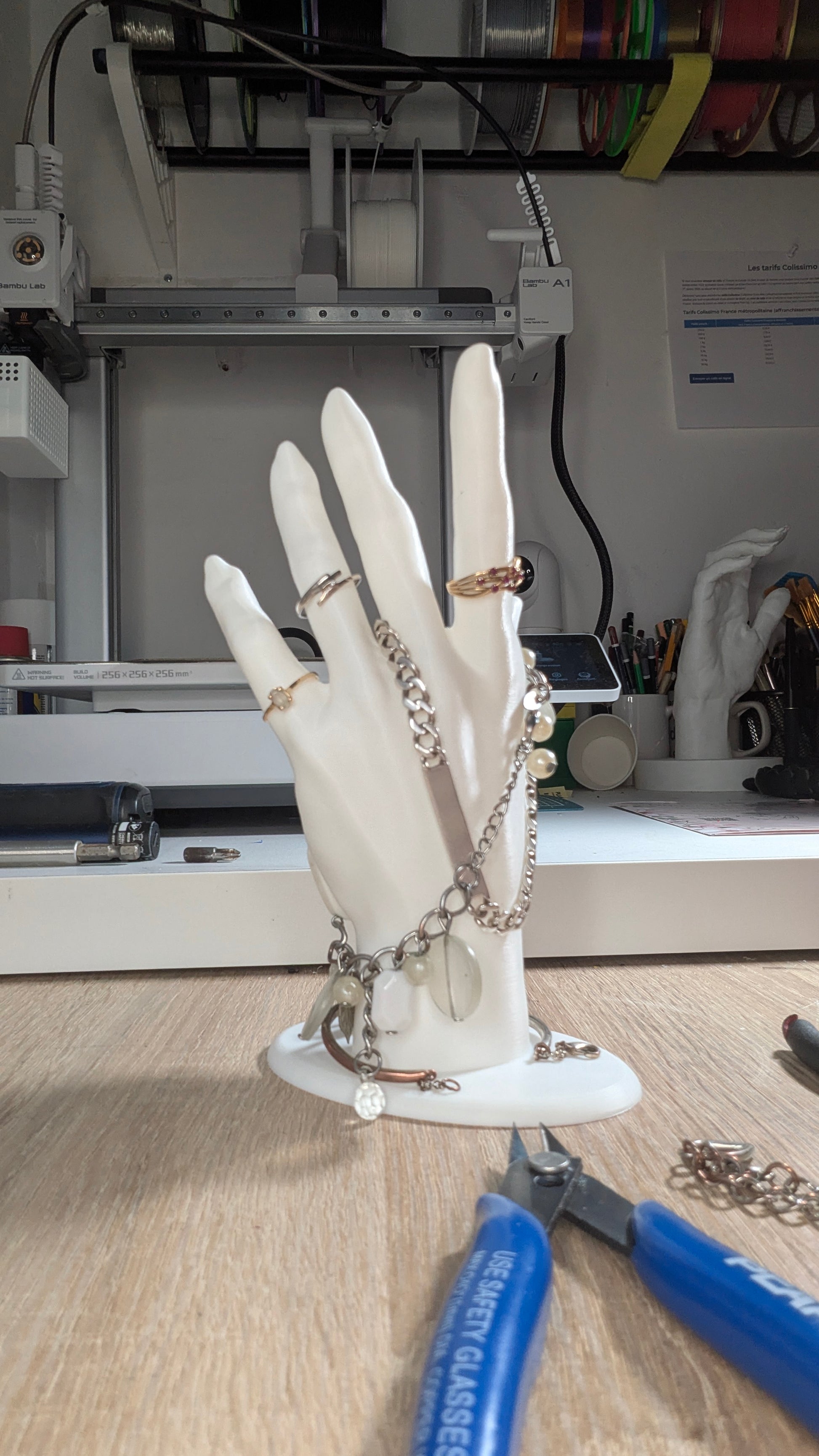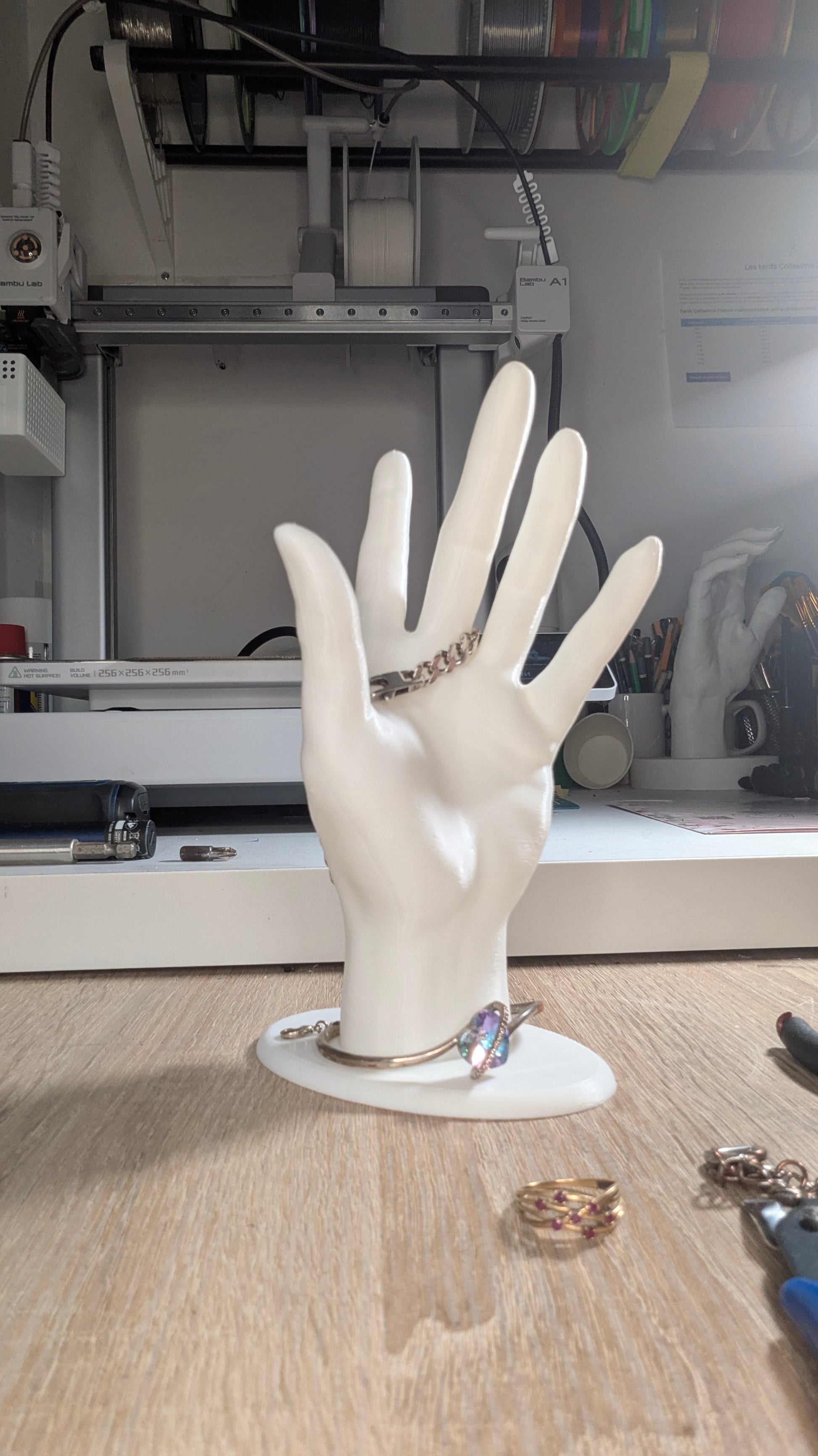 Vous êtes fatigué que vos bijoux jouent à cache-cache ? Découvrez La Main Magique ! Ce support 3D n’est pas seulement un artiste du rangement, c’est aussi un vrai charmeur qui va faire rougir d’envie vos amis.