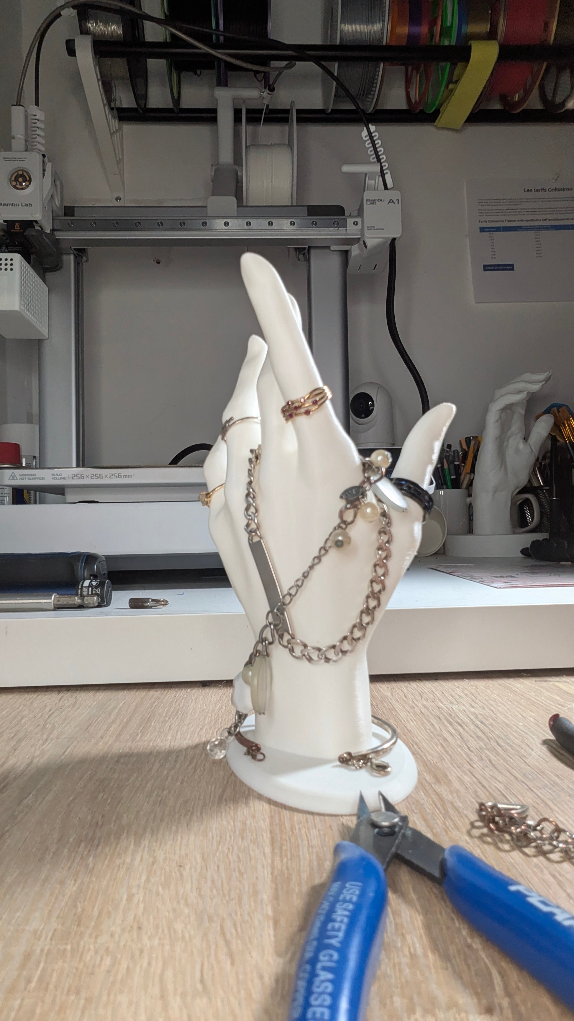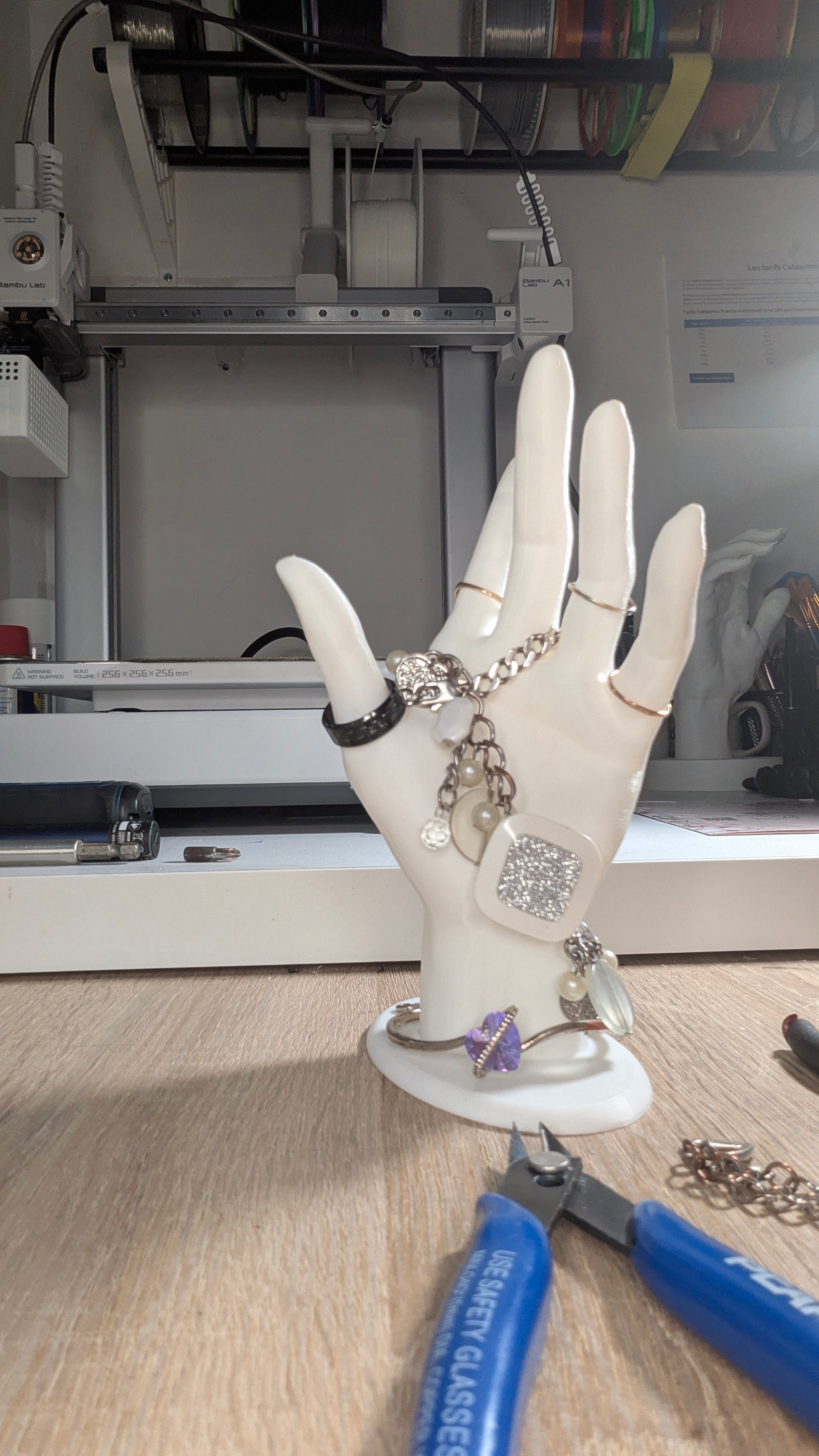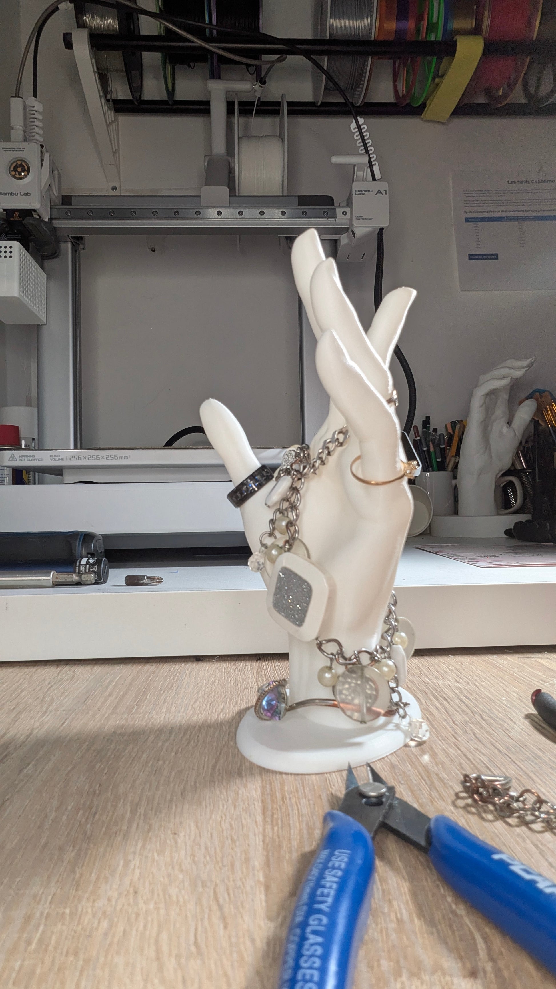 Vous êtes fatigué que vos bijoux jouent à cache-cache ? Découvrez La Main Magique ! Ce support 3D n’est pas seulement un artiste du rangement, c’est aussi un vrai charmeur qui va faire rougir d’envie vos amis.