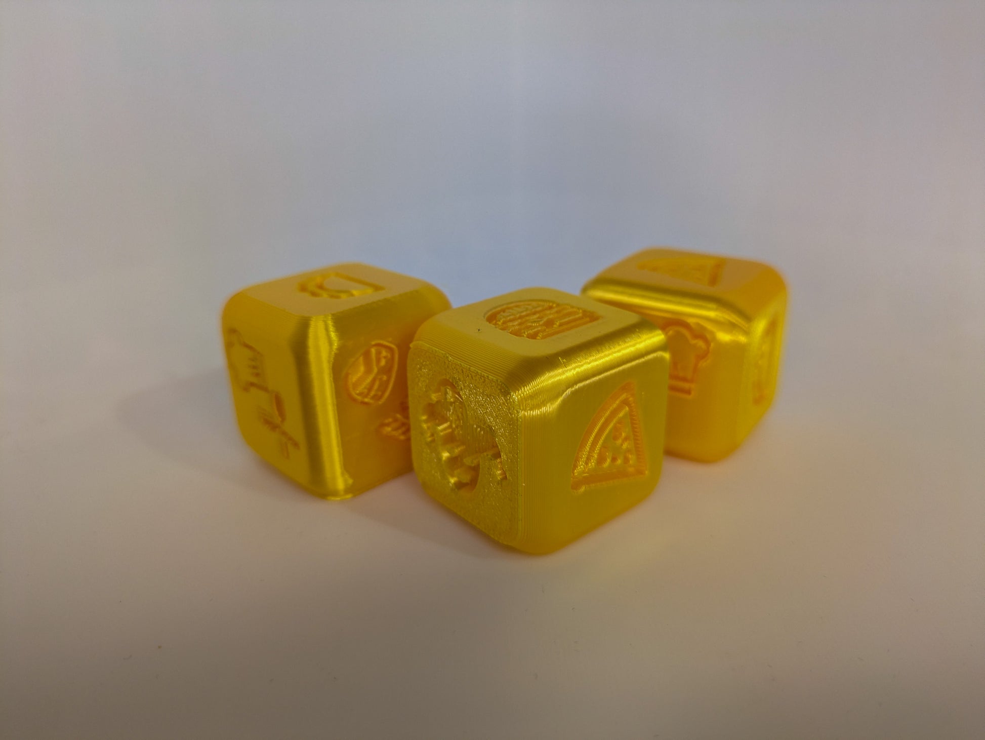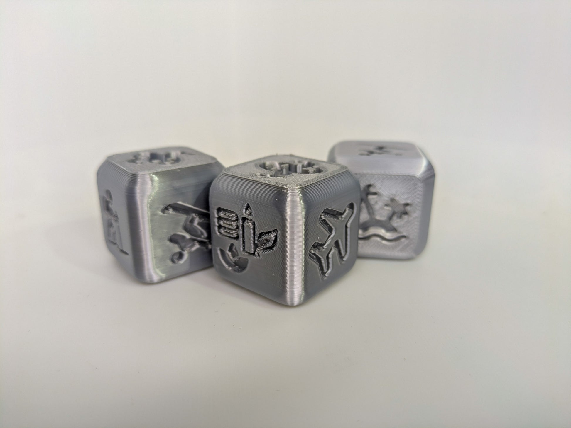 <p>Imprimés en <strong>3D dans nos ateliers en Aveyron</strong>, ces dés originaux sont à la fois <strong>design, durables et légers</strong>. Chaque dé représente un thème du quotidien :</p>
