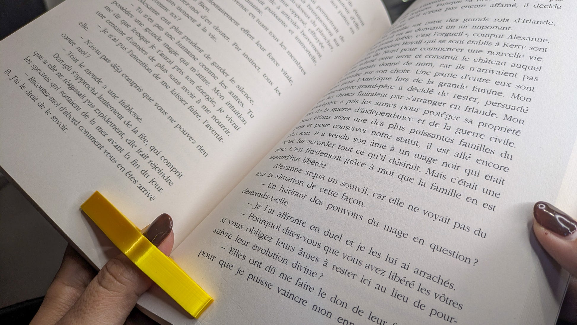 Imprimés en 3D dans nos ateliers en Aveyron, ces petits accessoires ingénieux permettent de maintenir votre livre ouvert d’une seule main, que vous soyez dans les transports, au lit ou au soleil.